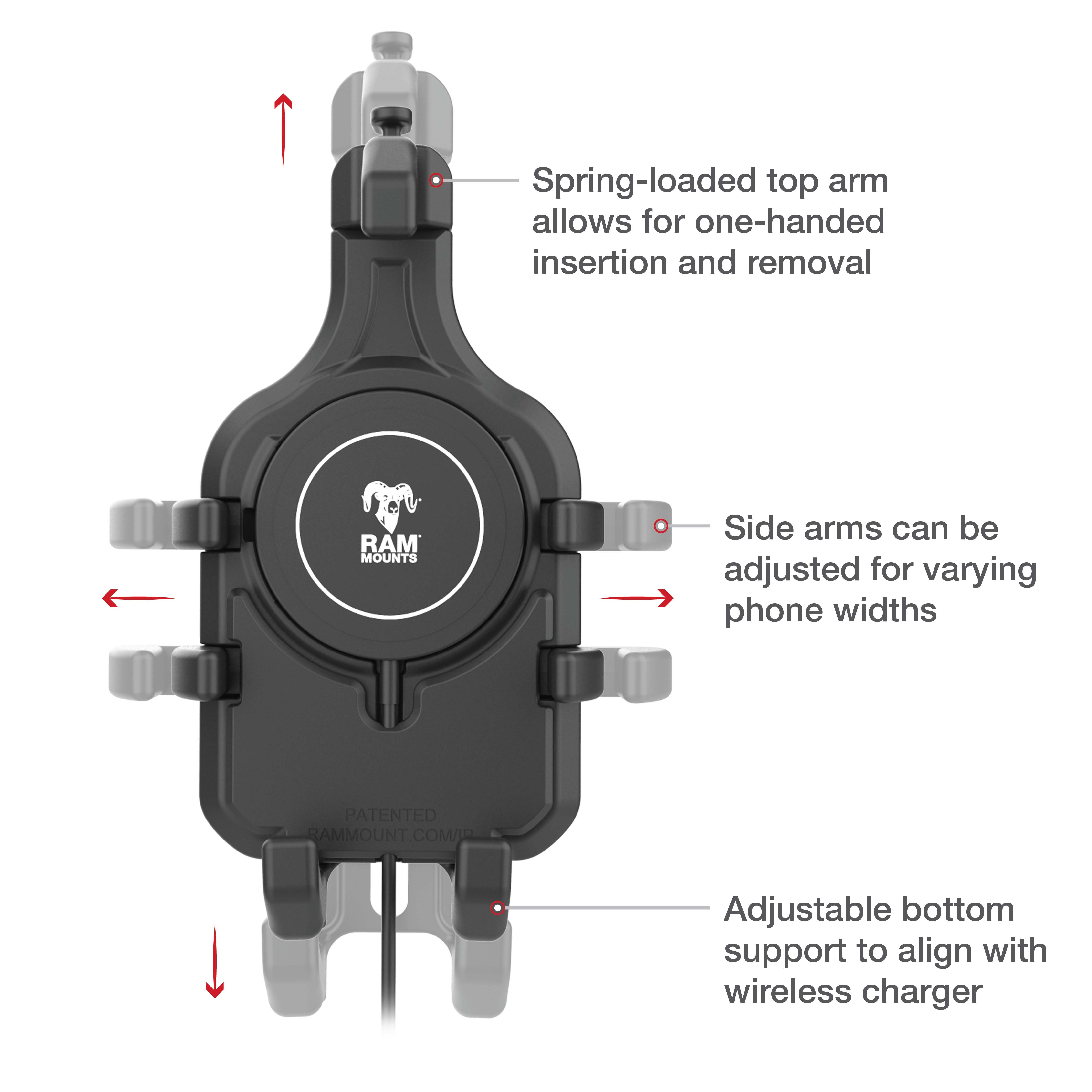 • Inclusief RAM® Qi2 draadloze oplader die naadloos past in de geïntegreerde middenholte