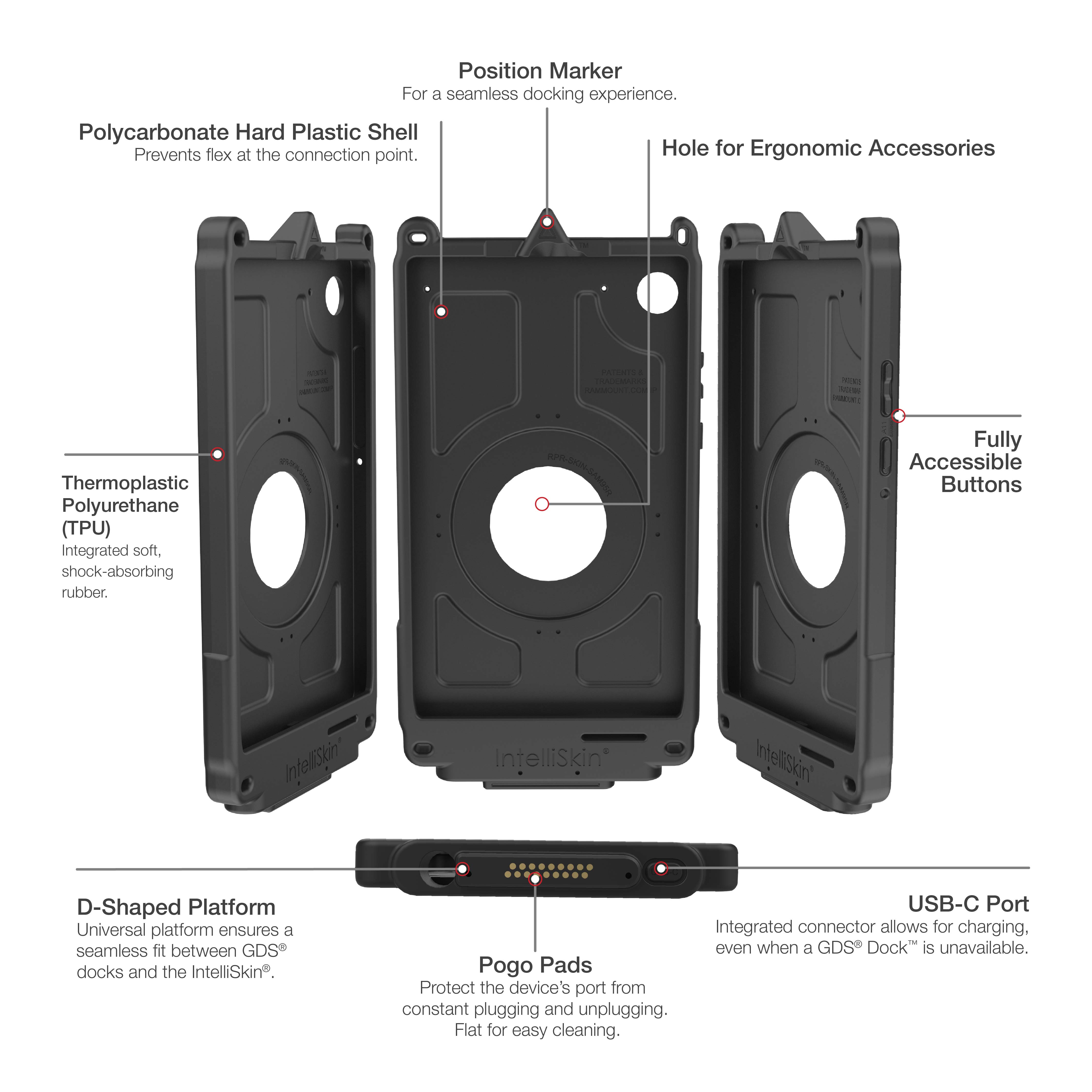 • GDS®-connector en dockingcontacten bieden oplaad- en synchronisatie-mogelijkheden; universele positie-marker compatibel met IntelliSkin® Next Generation-docks.