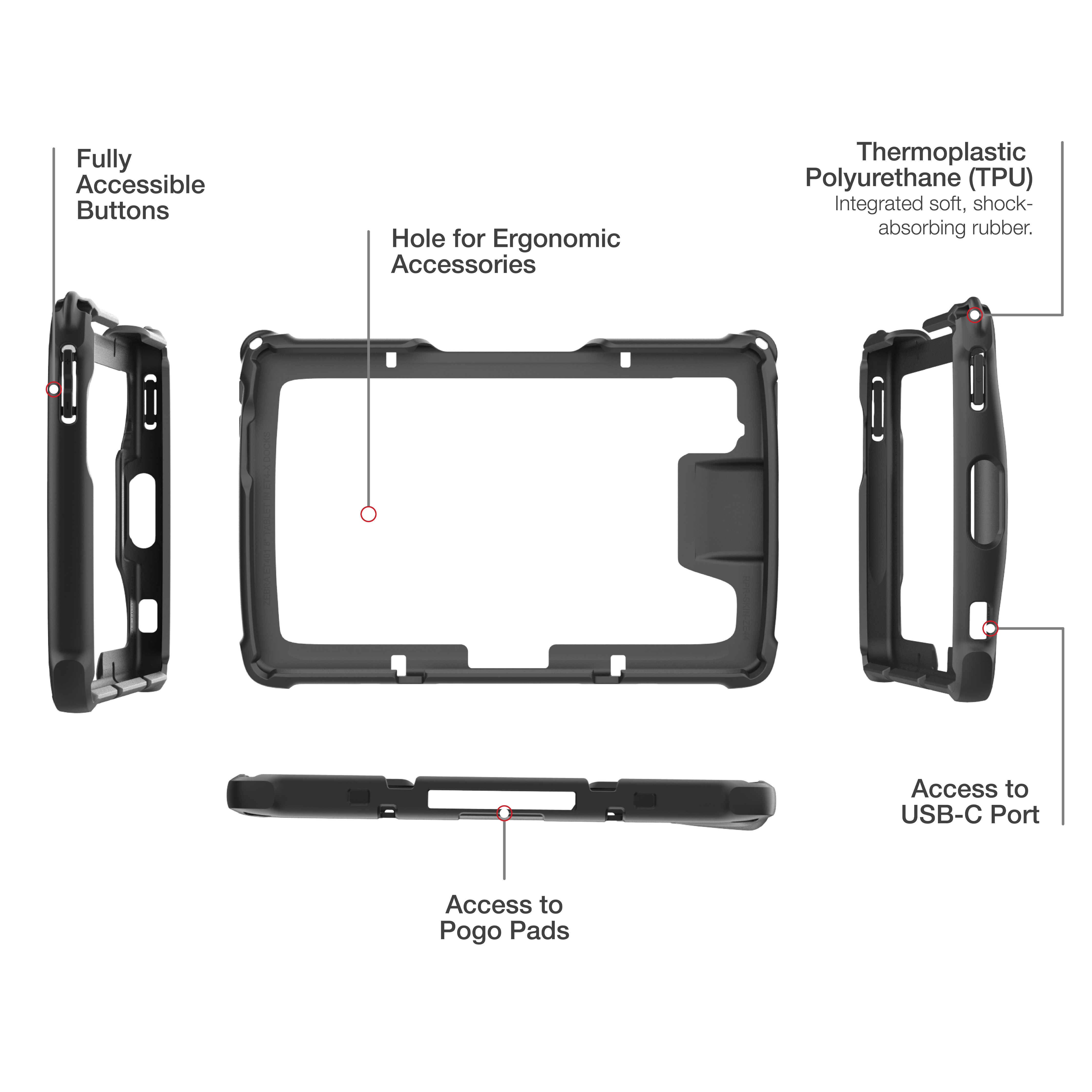 De RAM Skin voor de Zebra ET401 20,32 cm (8") (RAM-SKIN-ZE44) biedt betrouwbare valbescherming en naadloze docking compatibiliteit voor veeleisende buitenomgevingen. Specifiek ontworpen voor de ET401 20,32 cm (8") , stelt deze robuuste hoes de tablet in staat om verbinding te maken met bestaande RAM Tough-Dock pogo pin docking stations gemaakt voor de ET40/ET45, wat zorgt voor een consistente en efficiënte workflow. De blootliggende achterzijde ondersteunt een breed scala aan accessoire-integraties, waaronder de GDS Roto-Mag, Zebra Expansion Back, PowerPack Batterij met roterende handgreep, Payment Backs, clips, en banden. Gebouwd voor duurzaamheid en flexibiliteit, houdt de RAM Skin uw apparaat beschermd en klaar voor elke taak. Ondersteund door levenslange garantie voor langdurig vertrouwen in het veld.