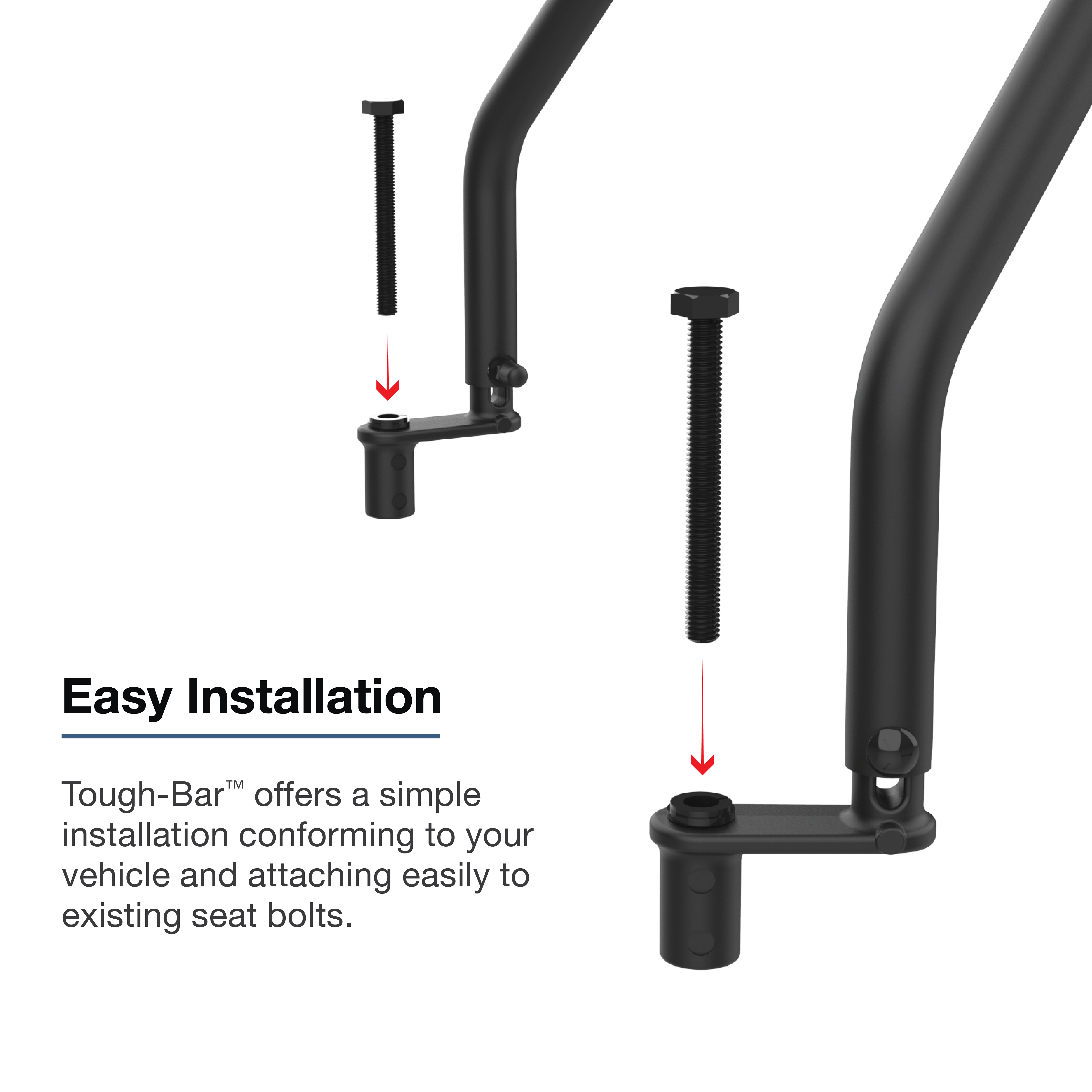The RAM Tough-Bar for '23-26 Ford F-250 - F550 (Center Console) (RAM-TB-29) is a custom-bent mounting bar engineered to contour perfectly to the vehicles dashboard center console. Designed for maximum stability, the Tough-Bar secures at three key points: the driver seat bolt, passenger seat bolt, and center dashboard, minimizing device vibration and movement even in rugged off-road conditions. The base includes two of the RAM Flex Adhesive Kogel Base for a no-drill installation onto the dashboard, and includes screws for a more permanent mounting option. The RAM Tough-Bar supports unlimited customization with components made specifically for the bar and is fully compatible with all RAM rail bases, including the RAM Tough-Claw, U-Bolt Base, and Torque Base. Built with safety and versatility in mind, the RAM Tough-Bar for Ford F-250 - F550 offers a clean, factory-style fit for mounting multiple devices without obstructing visibility or interior comfort.