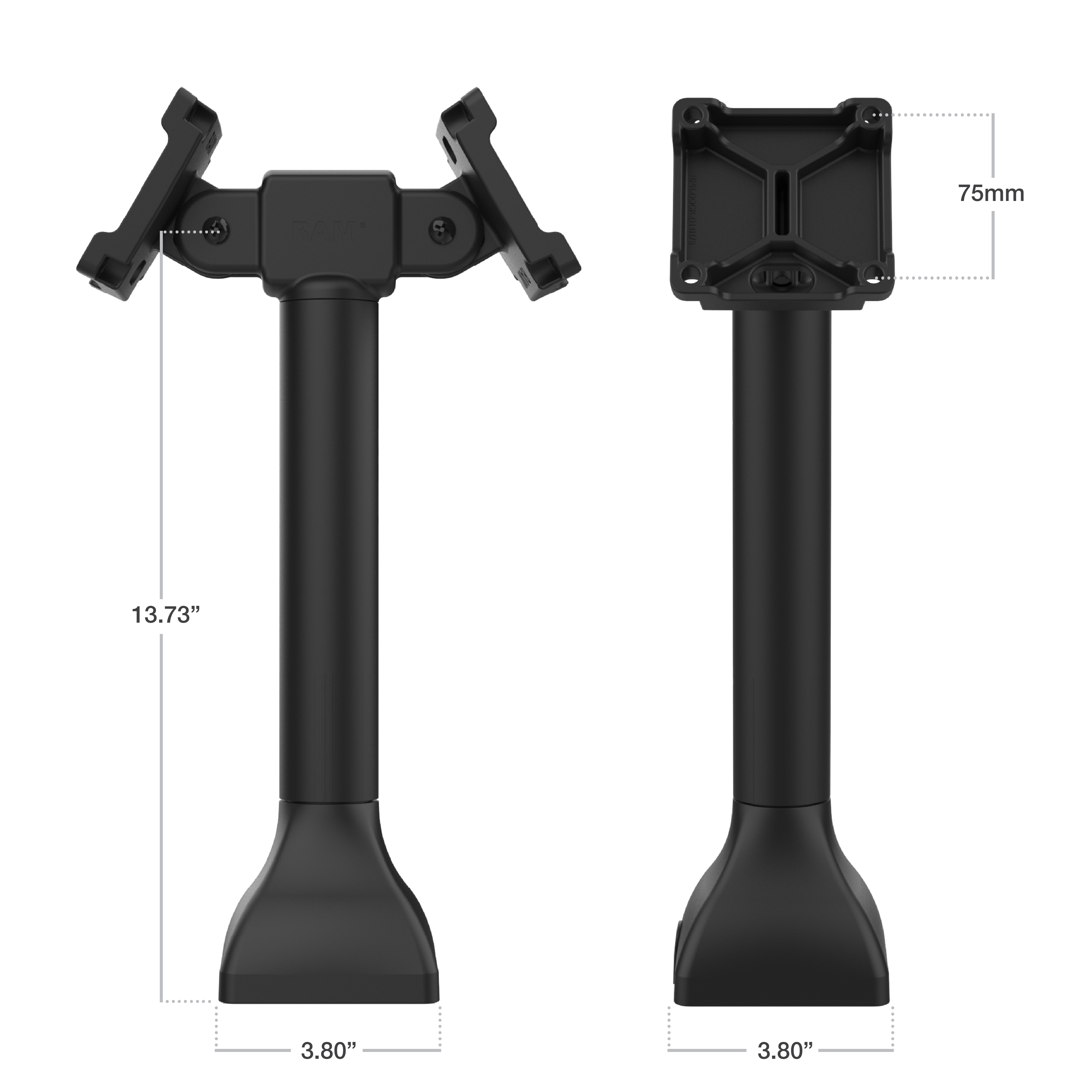 RAM® 35,56 cm (14") Pedestal montage met Dubbele 75mm VESA Adapters | SKU: RAP-D11H2-14-V75